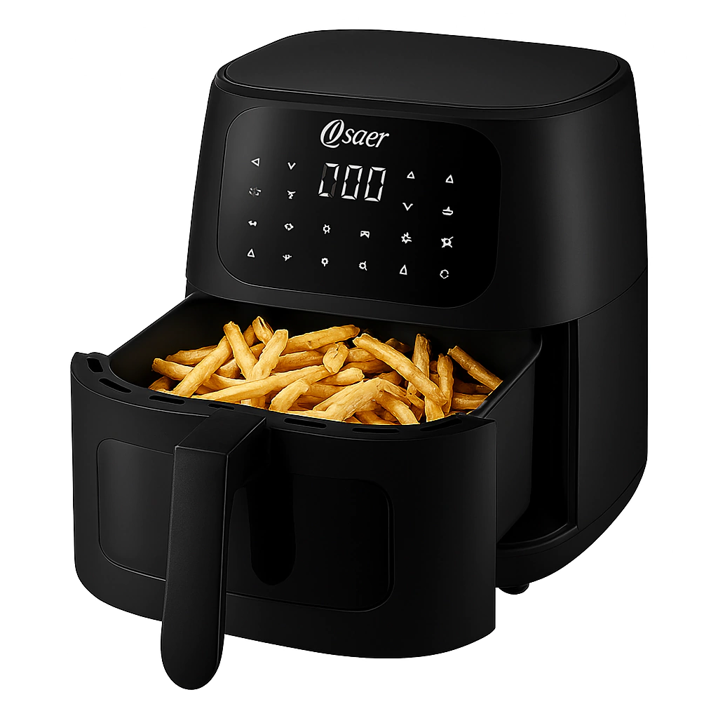 La Oster AF75W combina diseño moderno, gran capacidad y tecnología avanzada para cocinar sin aceite. Su ventana transparente y luz interna permiten controlar el proceso sin abrir la cesta, mientras que sus 10 programas automáticos simplifican la preparación de platos variados.