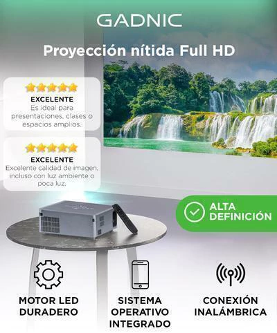 El Gadnic PROJ091W es un proyector LED Full HD con 8000 lúmenes, sistema Android integrado, sonido envolvente Dolby, y conectividad total. Proyecta hasta 300 pulgadas con calidad profesional y acceso directo a apps, streaming y contenido online.